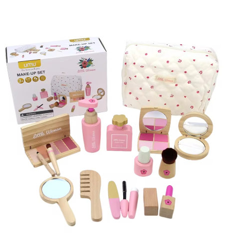 ألعاب مكياج خشبية للتظاهر، مجموعة مستحضرات تجميل محاكاة للفتيات، محاكاة تصفيف الشعر، ألعاب مكياج لمرحلة ما قبل المدرسة