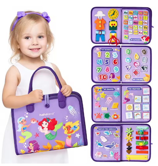 شعر مشغول لعبة اللغز الحسي للأطفال ، كتاب هادئ مونتيسوري ، الأرجواني ، النشاط الحسي ، التعليم في مرحلة الطفولة