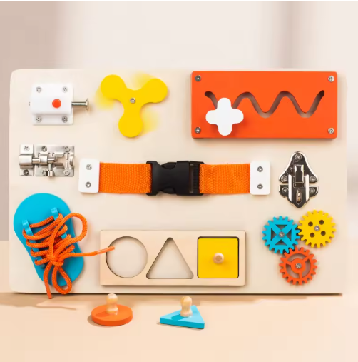 لعبة خشبية مشغولة مع ملحقات متعددة، وتعلم موسيقى ميكانيكية مبكرة، هدية للأطفال آمنة وسلسة