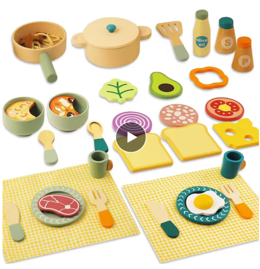 ألعاب المطبخ الخشبية مجموعة اللعب التظاهري قطع اللحوم والخضروات محاكاة المطبخ مسرح لعبة مونتيسوري ألعاب تعليمية مبكرة