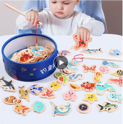 ألعاب صيد خشبية من مونتيسوري للأطفال، ألعاب تعليمية تفاعلية للحياة البحرية، لعبة تعليمية تفاعلية بين الوالدين والطفل