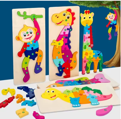 ألغاز خشبية للأطفال، ألغاز الأرقام، ألغاز الديناصورات والحيوانات، حركة المرور، ألعاب الصور المقطوعة الشخصية للأولاد والبنات هدية مثالية، 1-6