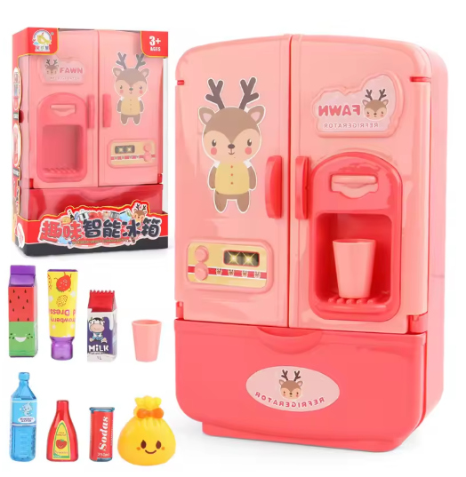 دمية صغيرة أثاث الثلاجة المطبخ المنمنمات الثلاجة لعب الأدوار لعبة مونتيسوري لعب ألعاب الطعام للفتيات