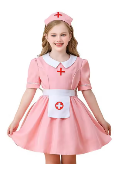 زي الهالوين للأطفال، زي الممرضة الوردي، فستان تنكري للأداء للفتيات والأطباء والممرضات