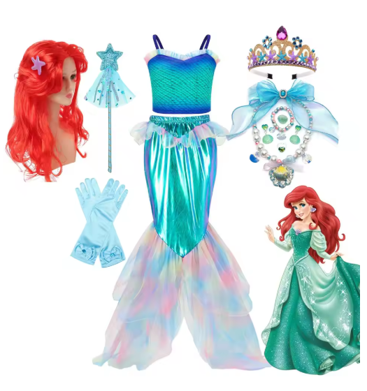 زي حورية البحر الصغيرة لفيلم ديزني، فكرة عيد ميلاد، فستان حفلة الأميرة أرييل مكون من قطعتين، فستان ملابس مهرجان بوريم