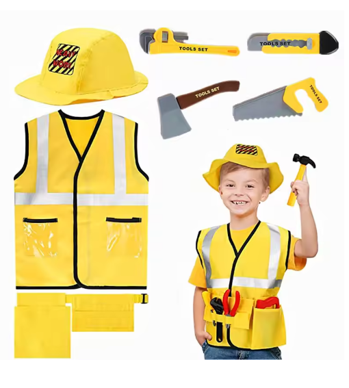 سترة لطيفة لعامل البناء للأطفال الصغار مع خطوط عاكسة لعمال الصرف الصحي سترة صفراء للحفلات التنكرية