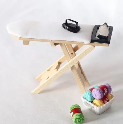 طاولة كي خشبية للدمى ، أثاث محاكاة ، معدن وراتنج