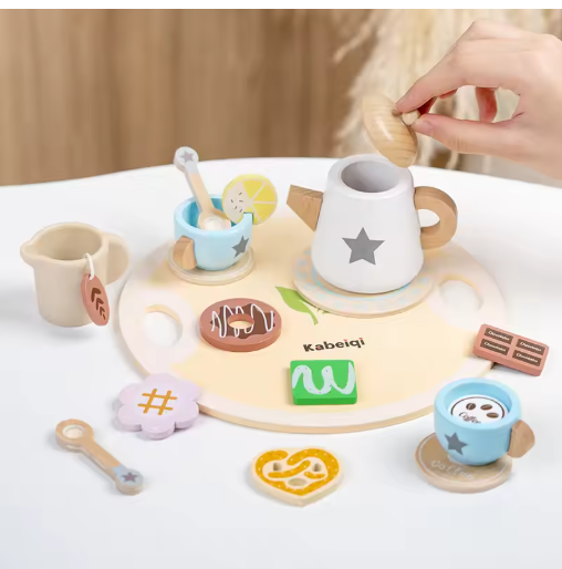 طقم شاي خشبي للأطفال: بيت اللعب التظاهري، صنع الشاي، إبريق الشاي/فنجان الشاي، وجبة خفيفة بعد الظهر | هدية ألعاب لعب الأدوار للأولاد والبنات