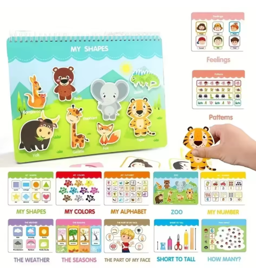 كتاب مشغول لمرحلة ما قبل المدرسة مع 12 موضوعًا على شكل حديقة الحيوان، كتاب هادئ ملون لأنشطة التعلم لمرحلة ما قبل المدرسة من مونتيسوري هدية للأطفال الصغار