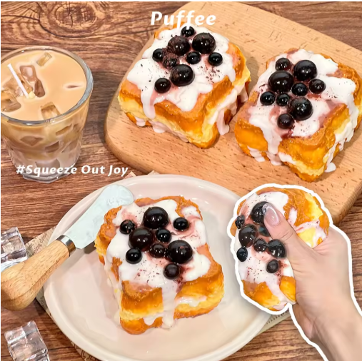 لعبة إسفنجية من السيليكون للطعام من بوبا توست، لعبة طابا إسفنجية مصنوعة يدويًا، لعبة ضغط بطيئة اللاصق الكريمي، بوبا