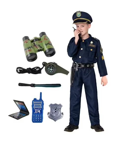 مجموعة أزياء الشرطة للأطفال من عمر 3 إلى 12 سنة مع ملحقات ألعاب مثالية لحفلات الهالوين وحفلات لعب الأدوار