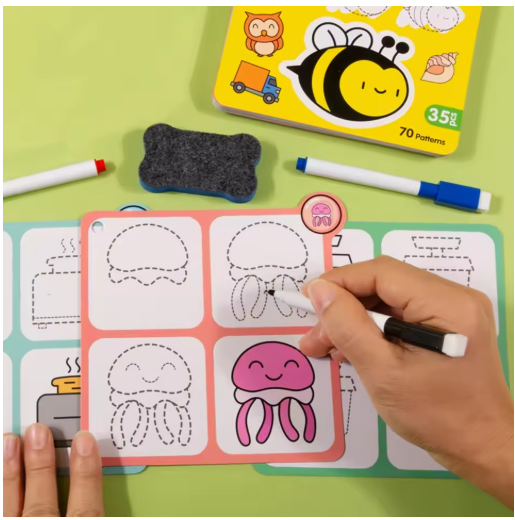 70 نمطًا من كتاب بطاقات الرسم البسيط للتعلم بخطوة، مجموعة جرافيتي قابلة لإعادة الاستخدام، رسم خط تعليمي كرتوني، التنوير التمهيدي، وسائل تعليمية للأنشطة الفنية لرياض الأطفال، مهارات الرسم والتدريب على التحكم في القلم